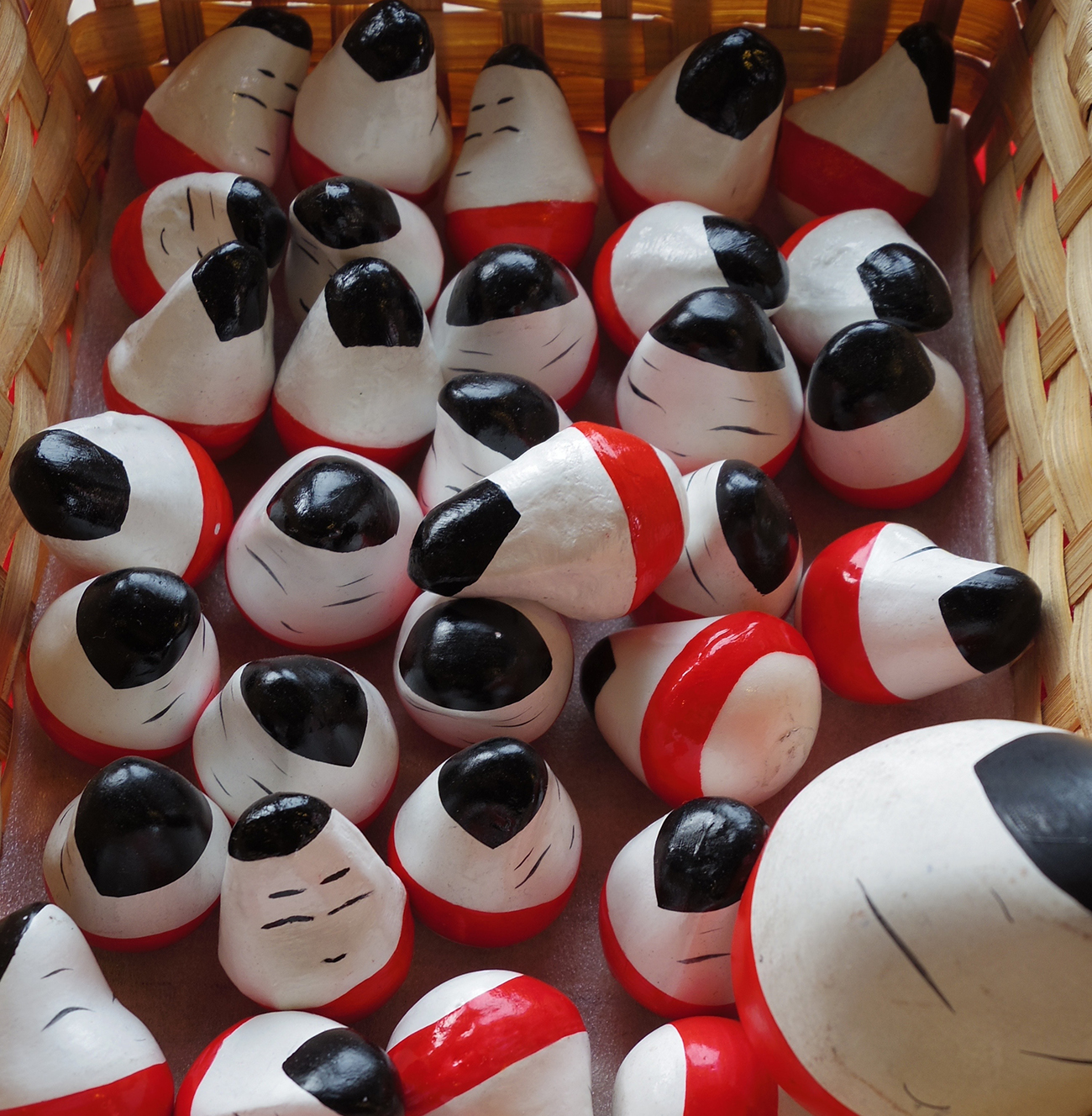 Okiagari Koboshi doll are traditional Japanese dolls. They’re usually made from papier- mâché and have a weighted rounded design that will always stand upright when toppled over. The dolls are considered to be good luck charms symbolizing perseverance and resilience.